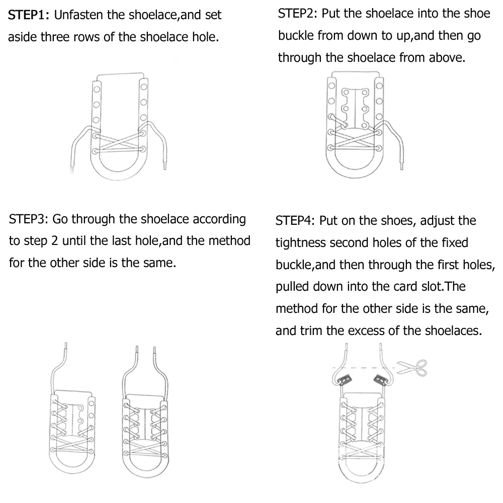 2nd: Adjust the tightness of the shoelace according to step4, and try to fix the shoelace loosely.